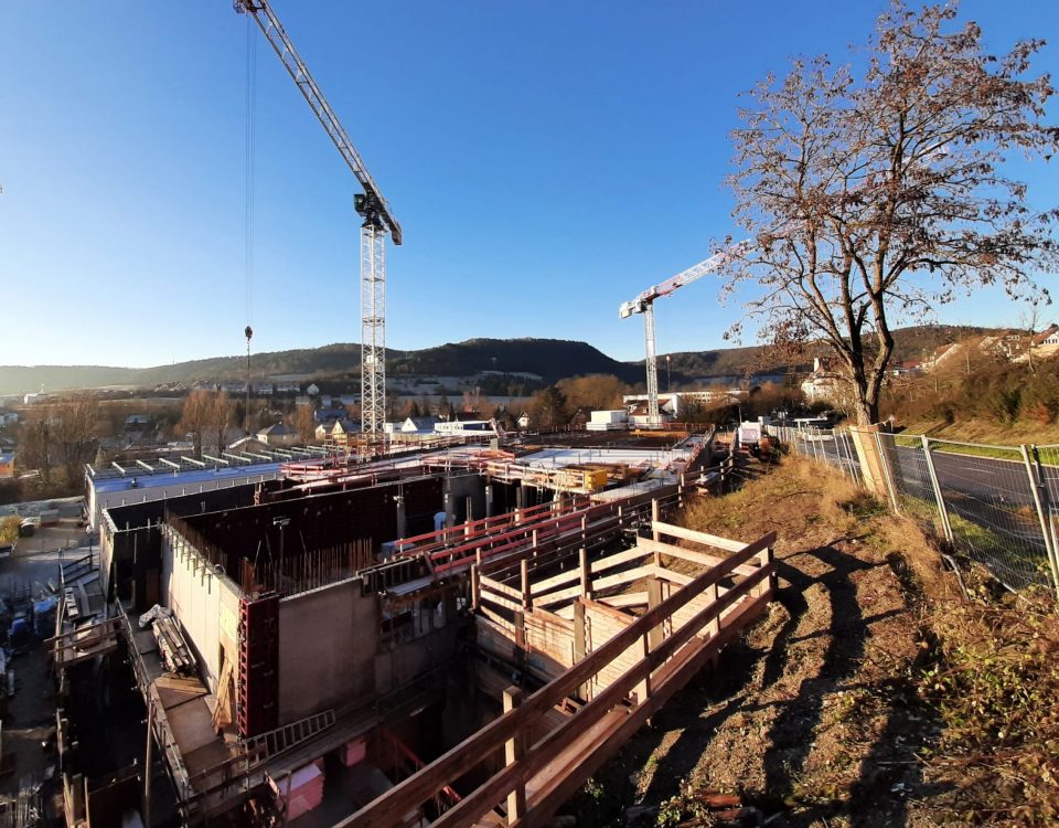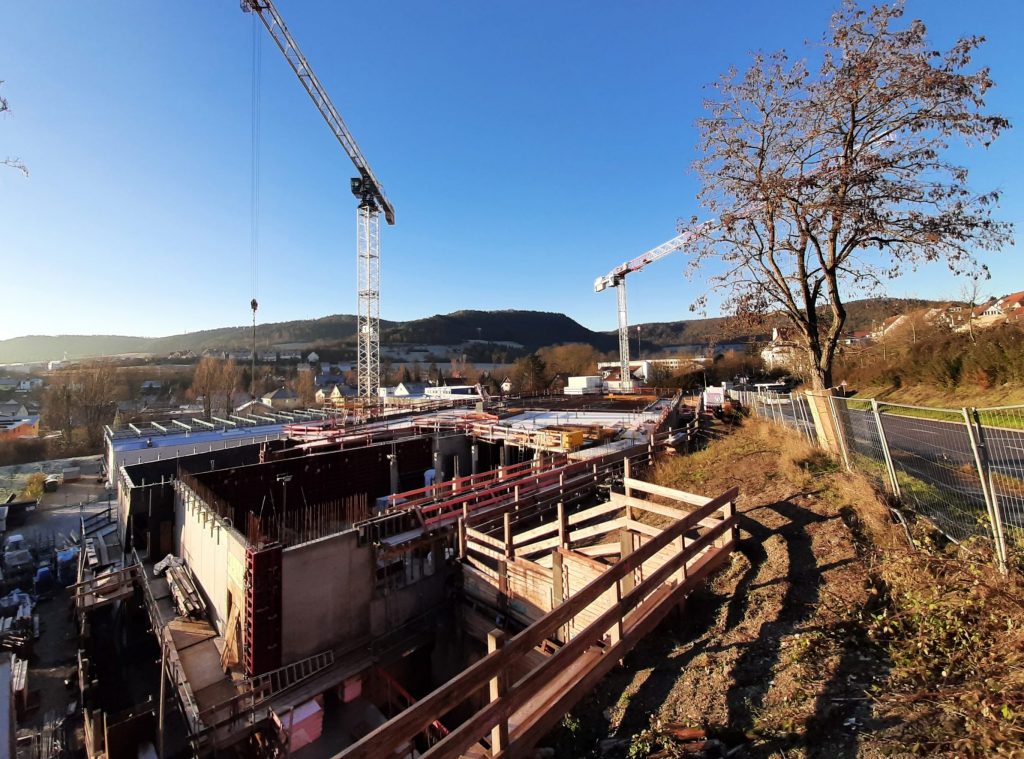 Das Gebäude wächst, die Betonteilaktivierung und die Betoneinlegearbeiten gehen voran. Mit Beauftragung der Firmen und Übergabe der Ausführungsplanung an die Gewerke der Technischen Gebäudeausrüstung kann der Start des Ausbaues im Frühjahr 2024 starten.